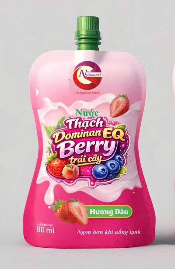 THÀNH PHẦN: nước tinh khiết, siro HFCS-55, thạch dừa, đường kính trắng, tinh bột konjac (khoai nưa), bột rong biển carrageenan (INS 407), chất điều chỉnh độ axit: axit citric (INS 330), natri citrat (INS 331), Kali clorua (INS 508), chất bảo quản: kali sorbat (INS 202), axit malic (INS 296), hương hoa quả tổng hợp (hương dâu).